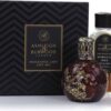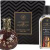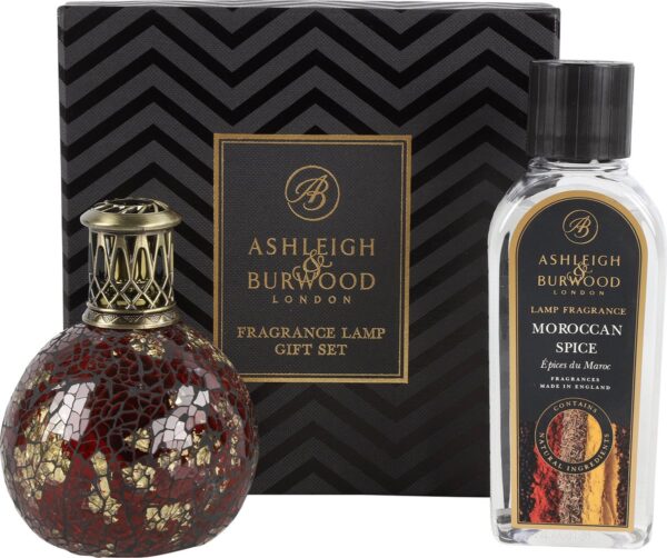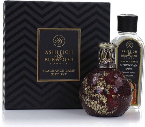 Ashleigh & Burwood Lamp Gift Set Dragon’s Eye is een geweldig mooie geurlamp gemaakt van glas mozaïek stukken. Deze lamp bevat hoofdzakelijk rood gekleurde mozaïek stukken met daarin verwerkt fonkelende vlekken van goud. Deze gouden vlekken lopen door naar de antieke koperen kroon, deze voltooit het ontwerp.