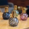 De geurlamp Heritage Amber van Ashleigh & Burwood is een modern vormgegeven fragrance diffuser in groen met een goudkleurige kroon.
