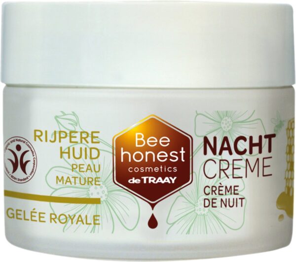 Een nachtcrème die de rijpere huid ’s nachts verzorgt en ondersteunt bij het herstellen. Met natuurlijke actieve ingrediënten, waaronder biologische gelee royale, biologische zonnebloem-, jojoba-, en sesamolie, biologische shea butter en extract van zoethoutwortel.
