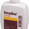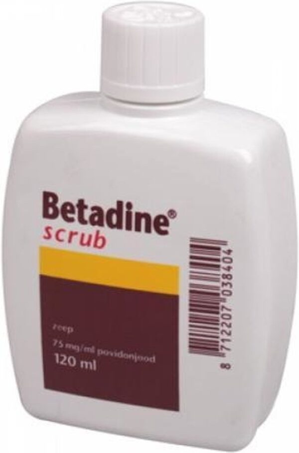 Betadine Scrub is een vloeibare milde desinfecterende zeep zonder korreltjes. Betadine Scrub is geschikt voor het onschadelijk maken van bacteriën, schimmels en virussen. De werkzame stof in alle Betadine varianten is povidonjodium. Dit is een speciaal soort jodium dat niet prikt, maar wel goed desinfecteert. Het is daarom een prettig middel om te gebruiken en zeer kindvriendelijk.