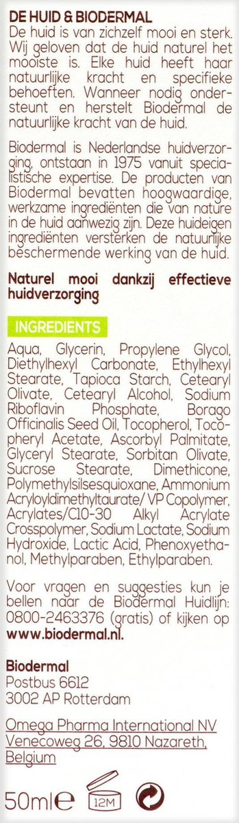 STAP 4: VERZORG met een verzorgende dagcrème of herstellende nachtcrème zoals de Biodermal Vette en Gemengde Huid dagcrème en de Biodermal Oogcrème.