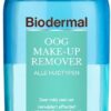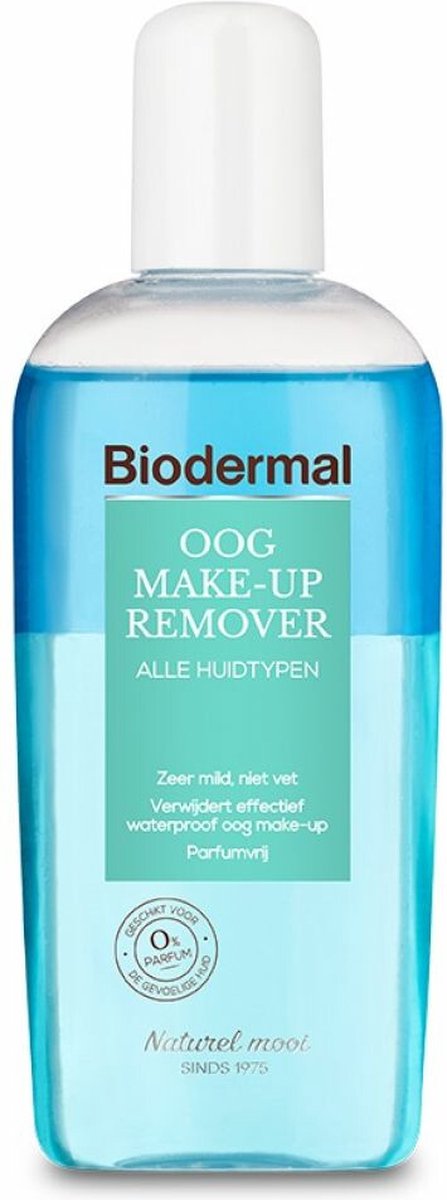 Biodermal Oogmake-up remover verwijdert alle soorten (waterproof) make-up en laat geen vettige laag achter. De Oogmake-Up Remover van Biodermal bestaat uit een olie- en waterfase. Het product is geschikt voor gevoelige ogen en contactlensdragers.
