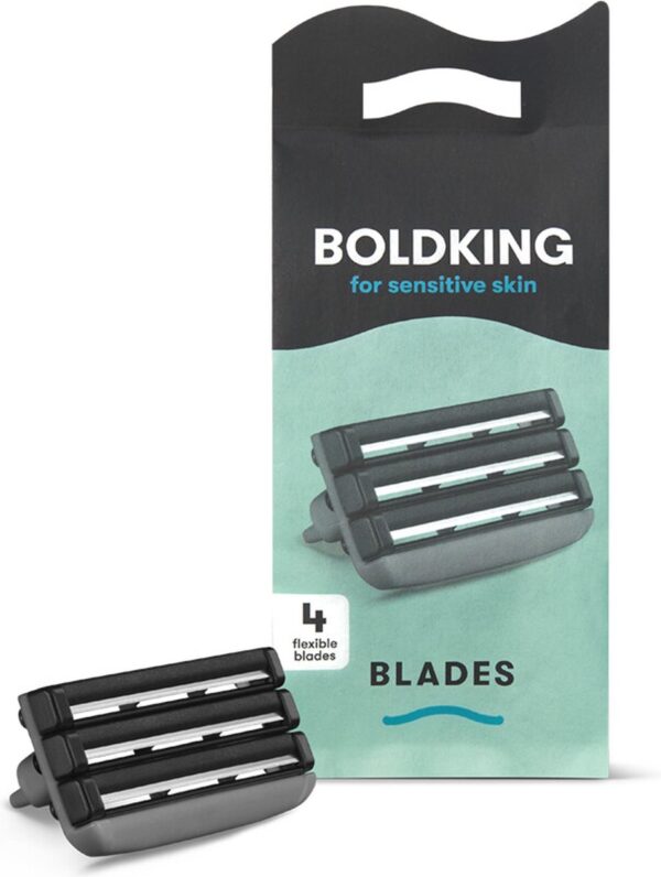 Boldking 4 Mesjes Gevoelige Huid zijn speciaal ontworpen om de rondingen en contouren van het gezicht en lichaam te volgen. De mesjes zijn flexibel en staan, ten opzichte van Boldking’s mesjes voor de normale huid, een paar fracties verder van de huid af. Dit zorgt voor een meer comfortabele scheerbeurt. Ook bestaat het scheermes uit drie mesjes, in plaats van de gebruikelijke vier of vijf mesjes. Hierdoor zit er extra ruimte tussen de mesjes, wat zorgt voor moeiteloos scheren zonder getrek aan je haren.