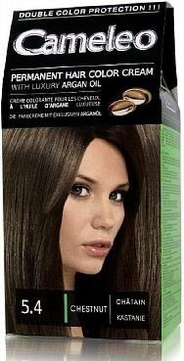 Met de Cameleo Haarverf Kastanje Kleuring 5.4 geef je je haar een prachtige kastanjebruine kleur. Deze haarverf zorgt voor een langdurig en intens resultaat, waardoor je haar er levendig en glanzend uitziet. De formule is verrijkt met natuurlijke olin die je haar verzorgen en beschermen tijdens het kleurproces. De kleuring is eenvoudig aan te brengen en dekt perfect op zowel natuurlijk als gekleurd haar.