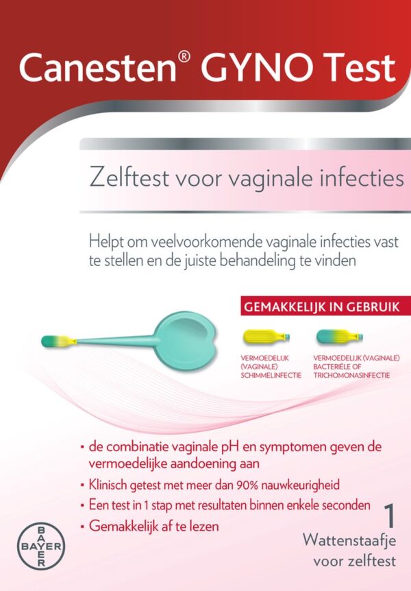 Doe makkelijk thuis de Canesten Gyno Test. Canesten Gyno Test is klinisch getest met meer dan 90% nauwkeurigheid. Canesten, je voelt je snel weer jezelf.
