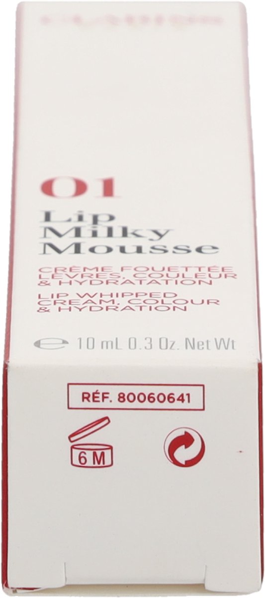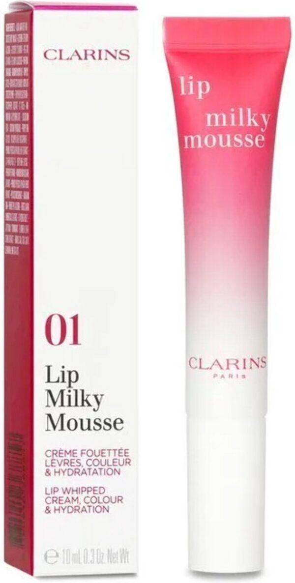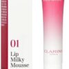 Lip Milky Mousse geeft de lippen een zweem van kleur en omhult ze met een perzikzacht, fluwelen, satijnen finish. Het heeft een lichte, luchtige en verfrissende textuur die als een wolkje slagroom op je lippen zweeft. brand CLARINS