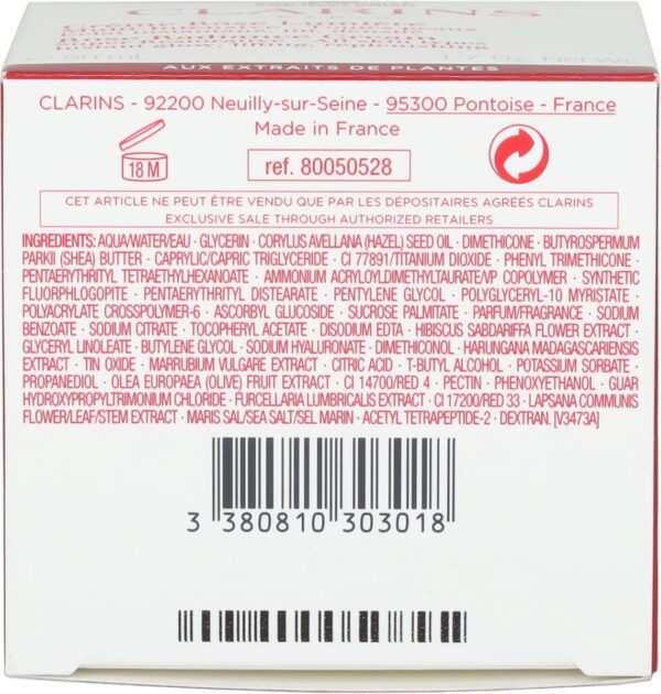 Ingrediënten: AQUA/WATER/EAU. GLYCERIN. CORYLUS AVELLANA (HAZEL) SEED OIL. DIMETHICONE. BUTYROSPERMUM PARKII (SHEA) BUTTER. CAPRYLIC/CAPRIC TRIGLYCERIDE. CI 77891/TITANIUM DIOXIDE. PHENYL TRIMETHICONE. PENTAERYTHRITYL TETRAETHYLHEXANOATE. AMMONIUM ACRYLOYLDIMETHYLTAURATE/VP COPOLYMER. SYNTHETIC FLUORPHLOGOPITE. PENTAERYTHRITYL DISTEARATE. PENTYLENE GLYCOL. POLYGLYCERYL-10 MYRISTATE. POLYACRYLATE CROSSPOLYMER-6. ASCORBYL GLUCOSIDE. SUCROSE PALMITATE. PARFUM/FRAGRANCE. SODIUM BENZOATE. SODIUM CITRATE. TOCOPHERYL ACETATE. DISODIUM EDTA. HIBISCUS SABDARIFFA FLOWER EXTRACT. GLYCERYL LINOLEATE. BUTYLENE GLYCOL. SODIUM HYALURONATE. DIMETHICONOL. HARUNGANA MADAGASCARIENSIS EXTRACT. TIN OXIDE. MARRUBIUM VULGARE EXTRACT. CITRIC ACID. T-BUTYL ALCOHOL. POTASSIUM SORBATE. PROPANEDIOL. OLEA EUROPAEA (OLIVE) FRUIT EXTRACT. CI 14700/RED 4. PECTIN. PHENOXYETHANOL. GUAR HYDROXYPROPYLTRIMONIUM CHLORIDE. FURCELLARIA LUMBRICALIS EXTRACT. CI 17200/RED 33. LAPSANA COMMUNIS FLOWER/LEAF/STEM EXTRACT. MARIS SAL/SEA SALT/SEL MARIN. ACETYL TETRAPEPTIDE-2. DEXTRAN [V3473A]