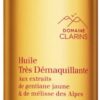 Deze olie verwijdert hardnekkige en waterproof make-up. De formule is verrijkt met het [Complexe Douceur] van Clarins met biologische extracten van gele gentiaan en melisse, die de huid kalmeren en verzachten.