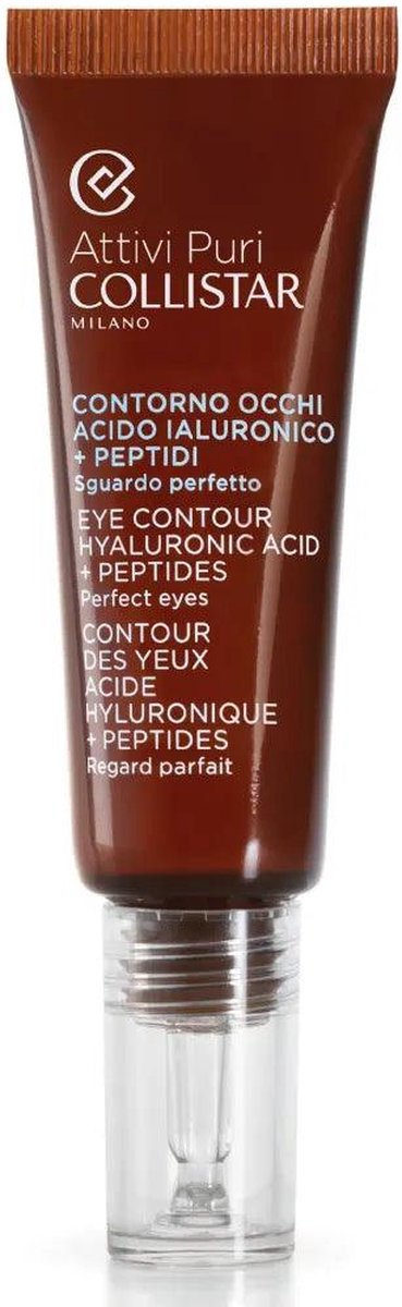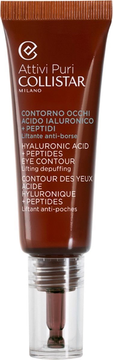 Collistar Eye Contour Hyaluronic Acid Peptides Oogcrème 15 ml bestrijdt wallen, donkere kringen, rimpels en hangende oogleden door de combinatie van hyaluronzuur en peptiden in een speciale matrix. Hydrateert en verfrist en bestrijdt zichtbare tekenen van vermoeidheid of huidveroudering rondom de ogen. Een ideaal product s´ ochtends na het ontwaken dat de typerende wallen, eenmaal wakker, eenvoudig corrigeert en s´ avonds zodat het tijdens de nachtrust zijn werking kan uitoefenen. Het product is geschikt voor alle huidleeftijden en -typen. Zonder parfum, alcohol of kleurstoffen. Geschikt bij gevoelige ogen. Geschikt voor contactlensdragers.-Collistar Eye Contour Hyaluronic Acid Peptides Oogcrème 15 ml
