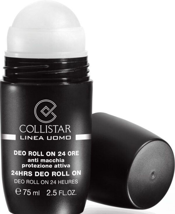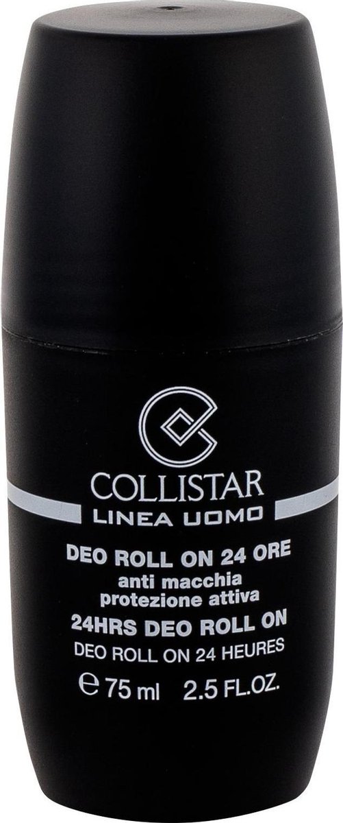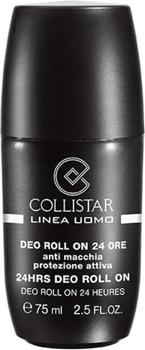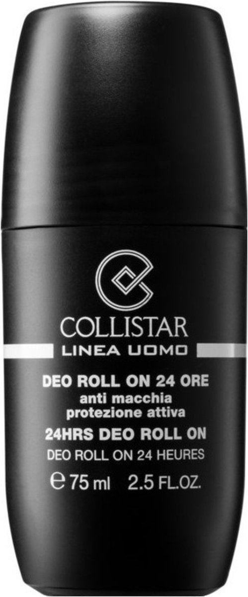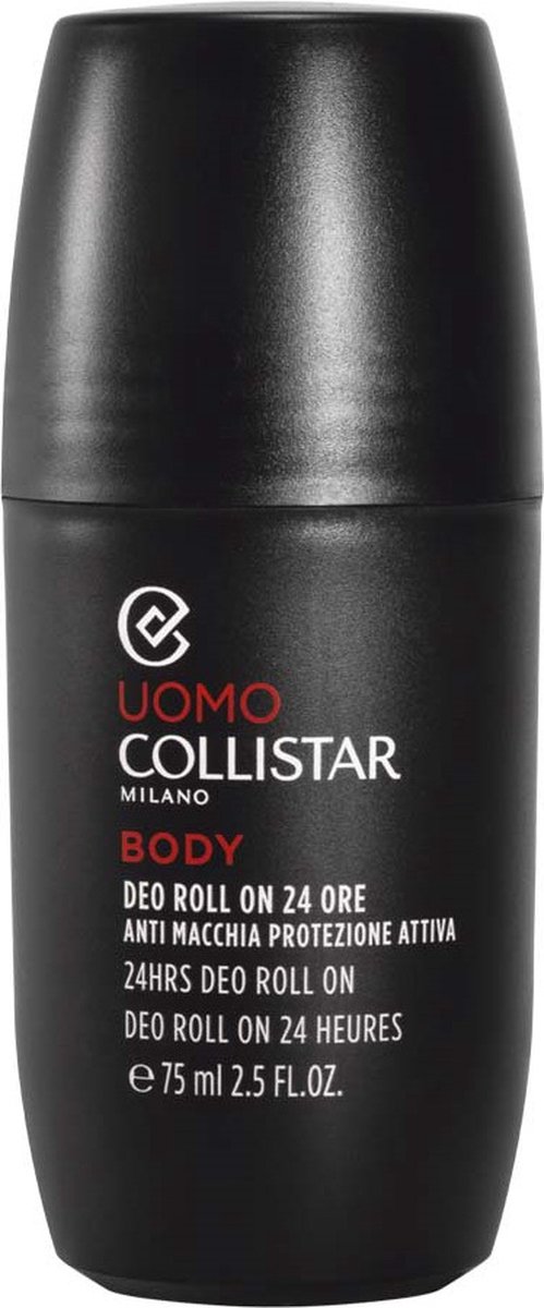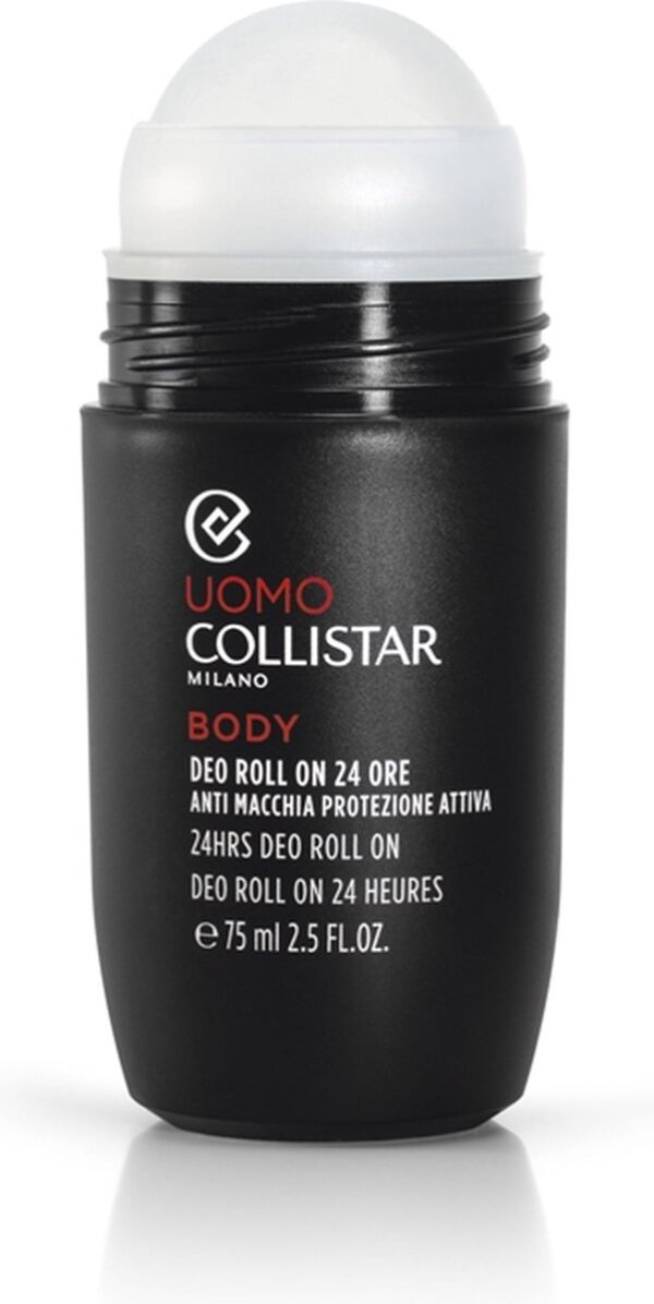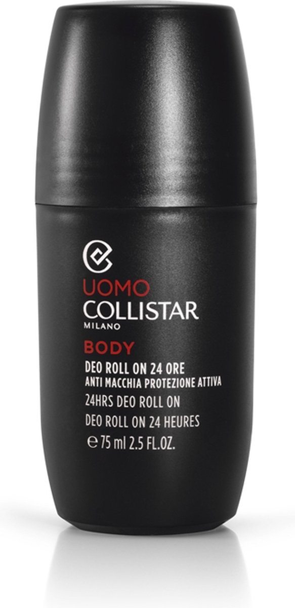 Uomo Body 24HRS Deo Roll On 75 ml. Deze antiperspirant deodorant roll-on biedt de hele dag een actieve bescherming tegen nare luchtjes en vlekt niet op kleding. De formule droogt snel, gaat niet plakken, beschermt de kwetsbare okselhuid en biedt verfrissing. Bevat een uitvoerig getest antibacterieel ingrediënt met longlasting deodorant doeltreffendheid, kamille extract dat kalmerend werkt en de intense frisheid van menthol. Deze deo roller is vrij van alcohol, minerale oliën en parabenen.-Collistar Uomo Body 24HRS Deodorant 75 ml
