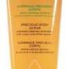 De Precious Body Scrub voor gebruik goed mengen. Masseer vervolgens de scrub op het vochtige lichaam, daarna afspoelen onder de douche.