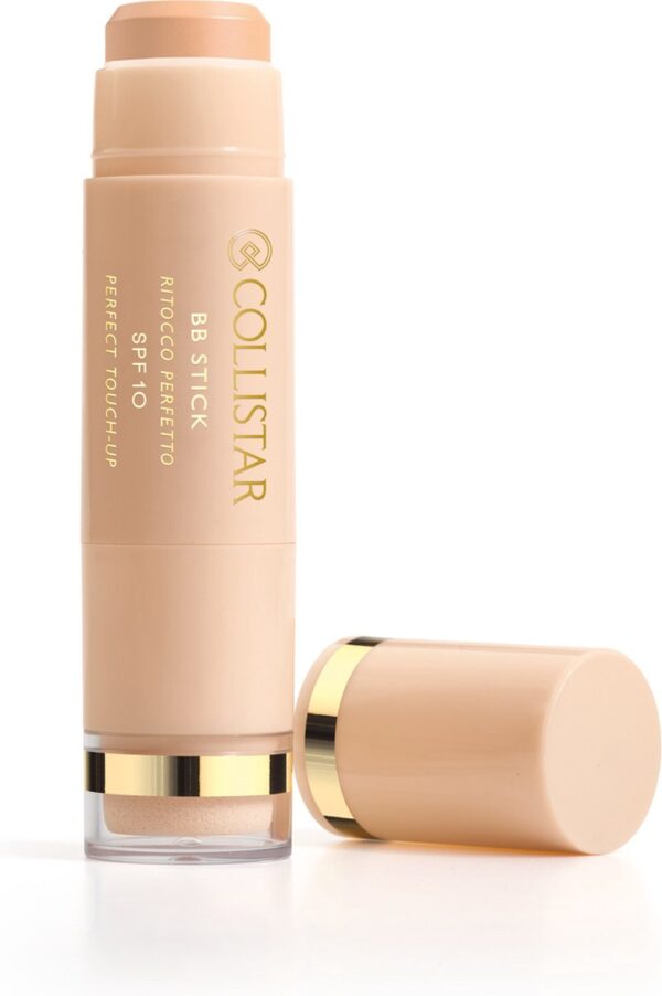 Nooit meer de deur zonder deze magische BB-stick! Gebruik waar en wanneer u wil met altijd een perfect resultaat. Met dit multi-inzetbare product kunt u het gehele jaar door, de dekking creëren die u wenst; plaatselijke camouflage of als foundation op het gehele gelaat. De zachte en crèmeachtige textuur is gemakkelijk aan te brengen en te “blenden” dankzij de bijgevoegde sponsapplicator. De stick heeft een natuurlijke kleur die in dekking opgebouwd kan worden en de huid hydrateert, perfectioneert en comfort geeft. De exclusieve formule bevat hyaluronzuur en het Collistar Multi Perfection System® dat het licht weerkaatst, waardoor de huid er stralend en perfect uitziet. Geschikt voor alle huidtypen en olievrij. ALS TOUCH-UP Breng een kleine hoeveelheid aan op bijvoorbeeld donkere kringen rondom de oogcontour. Verdeel het product met de bijgevoegde sponapplicator. ALS FOUNDATION Breng het product in lijnen aan op het voorhoofd, de neus, de wangen en de kin en verdeel met de sponsapplicator tot u een egaal resultaat heeft.