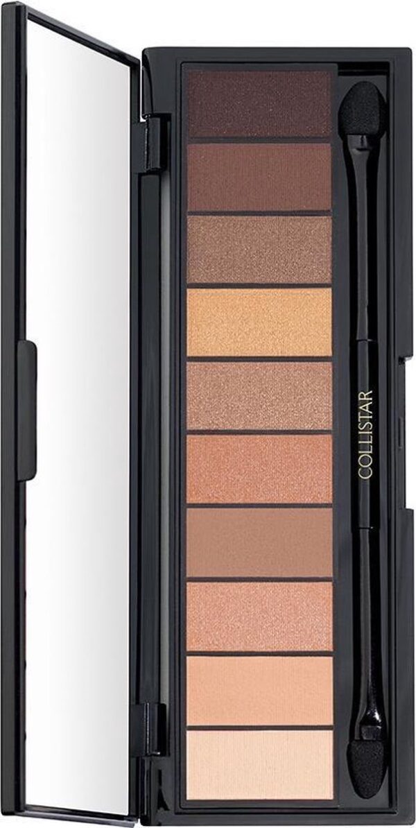 Een veelzijdig oogschaduwpalet ontworpen voor diegenen die absolute vrijheid willen bij het creëren van de perfecte oogmake-up, afhankelijk van je stemming of de gelegenheid. Tien verschillende kleuren oogschaduw met diverse texturen; mat, satijn en parelmoer, waardoor eindeloze creaties mogelijk zijn. De zachte en fluweelachtige poeders zijn gemakkelijk aan te brengen en blijven, als een filmlaagje, perfect zitten door de uitstekende hechting. De pure en stralende kleuren zijn gemakkelijk te “blenden” en garanderen egale dekking, perfecte kleurafgifte en een prachtige glans. Een elegant en compact palet met een handig spiegeltje en dubbele applicator.