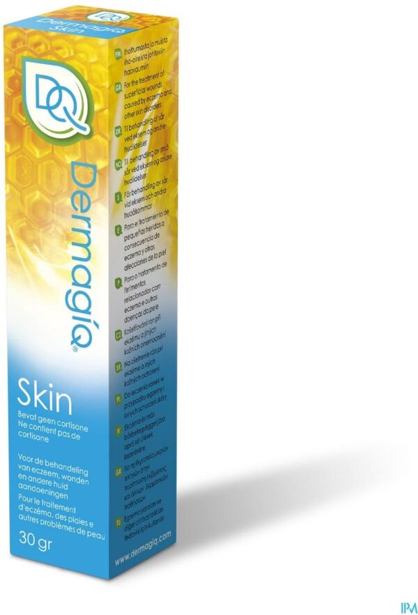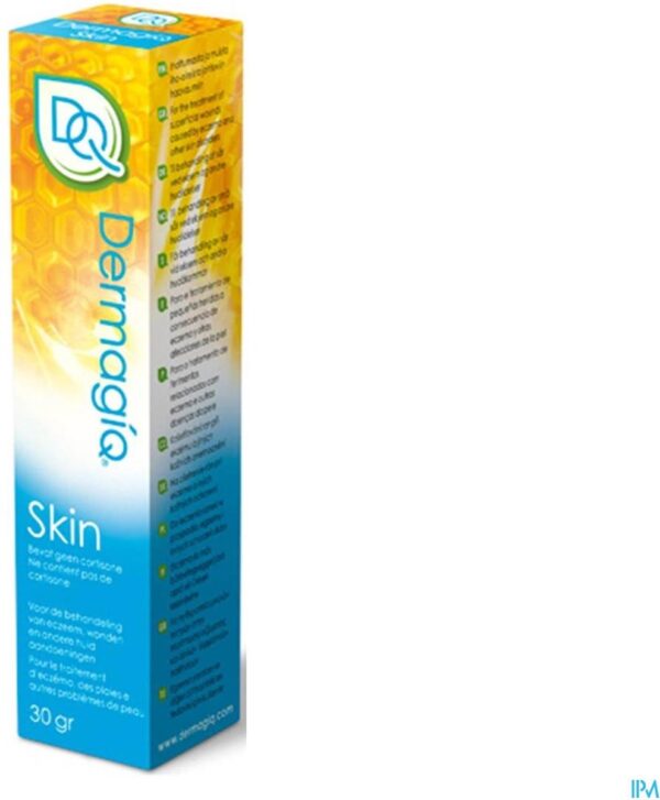 Gebruik: Een laagje Dermagiq® Skin aanbrengen op de te behandelen plaats. Dermagiq® Skin licht inmasseren en goed in laten trekken. Bij oppervlakkige wondjes mag de behandelde plek worden afgedekt met een wondverband.