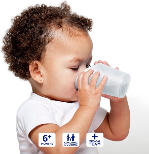 De oefenbeker stimuleert de juiste drinkhouding doordat het hoofd recht blijft, in plaats van achterover buigt. Slikken gaat hierdoor makkelijker. Te gebruiken vanaf 6 maanden.