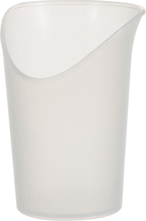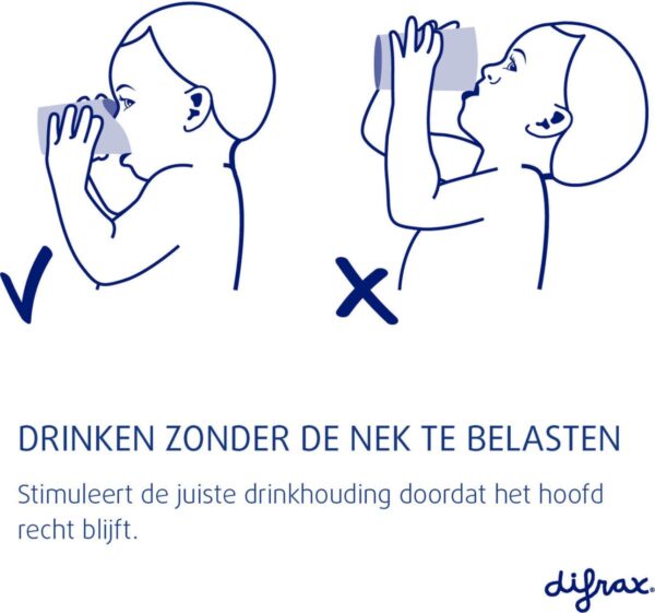 Tip! Leg het randje van de beker op de lip om morsen te voorkomen. Als ouder kun je gemakkelijk meekijken of het kind niet een te grote slok neemt. Ideale eerste stap om te leren drinken uit een drinkbeker. Ontwikkeld door Difrax medisch team.