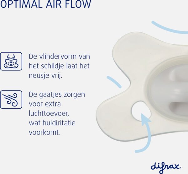 • De gaatjes in het fopspeenschildje zorgen voor extra luchttoevoer wat huidirritatie voorkomt. .