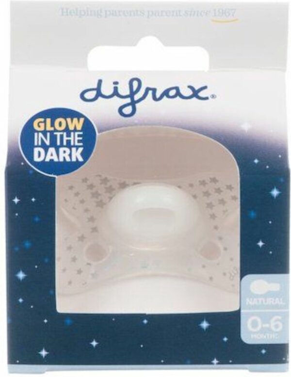 De 0-6 maanden Natural Difrax Glow in the Dark fopspeen is makkelijk terug te vinden in het donker. Leg de speen overdag in de zon en vind deze ‘s nachts gemakkelijk terug in het bed van je kindje.