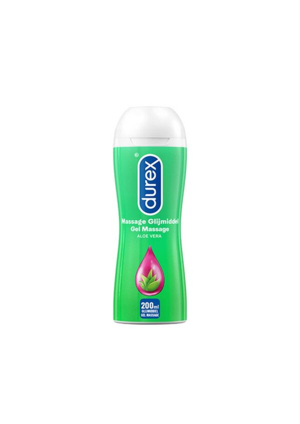 Durex Play Massage 2 in 1 aloë vera is een massagegel en glijmiddel dat op de intieme delen kan worden aangebracht. Deze gel is verrijkt met aloë vera-extract, bekend om zijn hydraterende en kalmerende eigenschappen. Deze glijmiddel is op waterbasis en geurloos. Het geeft geen vlekken en plakt niet. Het is geschikt voor vaginale, anale en orale seks. Dit glijmiddel kan gebruikt worden bij alle Durex condooms en seksspeeltjes.