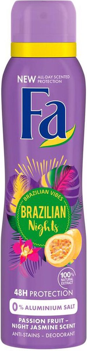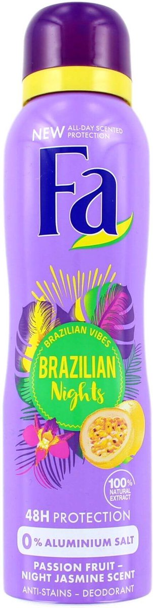 De Fa Deodorant Brazilian Nights biedt langdurige frisheid en betrouwbare bescherming tegen lichaamsgeur. Deze deodorant heeft een exotische geur van tropische vruchten en bloemige noten, waardoor je je mee kunt laten voeren naar een zwoele zomeravond. De formule is zacht voor de huid en laat geen witte strepen achter.