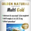 Golden Naturals Multi Gold bevat alle belangrijke vitaminen en mineralen in de bioactieve, dus goed opneembare vorm. Deze multi is speciaal voor mannen en vrouwen van 18 t/m 60 jaar. Bij de samenstelling is zoveel mogelijk gekozen voor optimaal opneembare stoffen en verbindingsvormen. Vitamine B6, B11 (folaat), vitamine B12, vitamine C en vitamine D3 zorgen voor het behoud van een goede weerstand. Vitamine B2, B6, B11, B12 en vitamine C ondersteunen bij vermoeidheid. Vitamine B1, B2, B6 en B12 en vitamine C zijn goed voor het zenuwstelsel. Vitamine B1, B6, B11, B12 en vitamine C ondersteunen de mentale functies en de gemoedstoestand. Denk aan geheugen en concentratievermogen of bij gevoelens van stress en spanning. Aan deze multi zijn verder enkele andere nutriënten toegevoegd, zoals zeaxanthine, luteïne en co-enzym Q10.