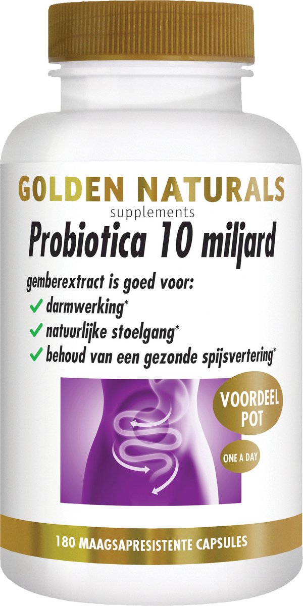 Wij van Golden Naturals proberen altijd innovatief te blijven. Naast alle andere eigenschappen van deze Probiotica 10 miljard, is er heel bewust gemberextract toegevoegd om jouw darmen extra ondersteuning te geven. Gemberextract is namelijk goed voor de darmwerking, de natuurlijke stoelgang en voor het behoud van een gezonde spijsvertering. Gember heeft een uitgesproken smaak, de een houdt ervan en de ander niet. Door gebruik te maken van een capsule proef je de gember niet bij het innemen van deze Probiotica 10 miljard.