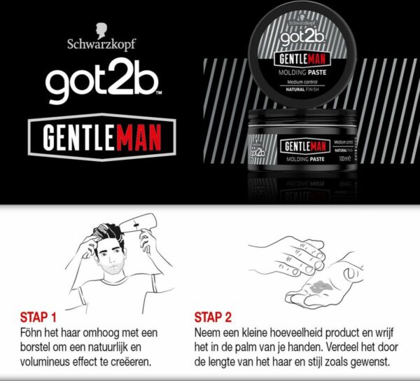 Got2b Gentleman Molding Paste is zacht voor het haar, geeft hoge hold en bevalt olie voor een natuurlijke gentlemans look
