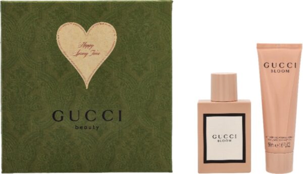 Gucci Bloom Giftset Dames – Zachte, bloemige geur voor dames in een luxe cadeau verpakking. De geur is geïnspireerd door het moderne, diverse, en authentieke beeld van de Gucci-vrouw. De naam ‘Bloom’ verwijst naar een weelderige bloementuin die tot volle bloei komt. De geurcombinatie van natuurlijke tuberoos en jasmijnblad creëert een verrassend weelderig wit bloemenparfum op de huid. De aanwezigheid van de Chinese kamperfoelie, een plant die van kleur verandert wanneer hij bloeit, voegt een poederachtige bloemige dimensie toe aan deze parfumcreatie. Deze geschenkset bestaat uit een eau de parfum spray en een bodylotion van beiden 50 ml inhoud.Gucci Bloom Giftset Dames:Basisnoten: IrisHartnoten: TuberoosTopnoten: JasmijnHoe te gebruiken?Eau de parfum spray:Gebruik de spray op een afstand van 10,20 cm van de huid.Spray op warme plekken van de huid zoals, hals, pols, achter de oren.Bodylotion:Breng de lotion aan op een schone huid, bij voorkeur direct na het douchen of na het ontwaken. Zorg ervoor dat de huid niet volledig droog is, maar ook niet te vochtig.Neem een hoeveelheid bodylotion in uw handen, verdeel het tussen de handpalmen en breng het gelijkmatig aan op de huid.
