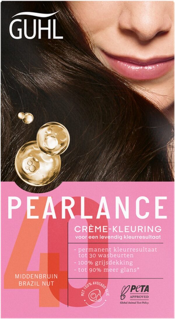 Ga voor een nieuwe kleur die je haar een levendige tint geeft, vol glans met het creatieve kleurenassortiment van Pearlance Crème Kleuring. De Guhl Pearlance Crème Kleuring Nr. 40 Middenbruin is ontwikkeld door salon professionals en biedt permanente kleurresultaten met 100% grijsdekking. Voor stralende kleurnuances vol levendige, schitterende glansreflecties. Houdt tot 30 wasbeurten.