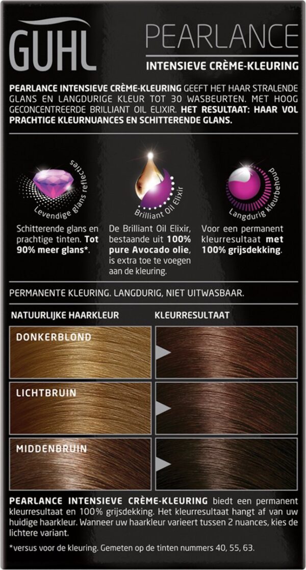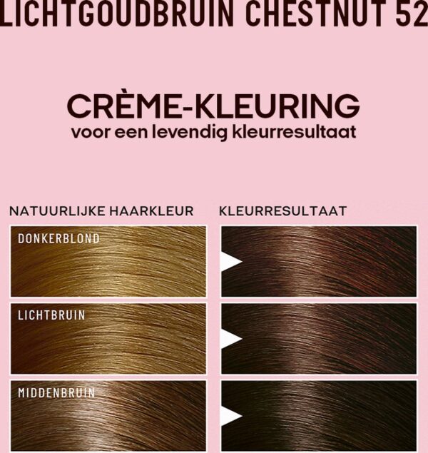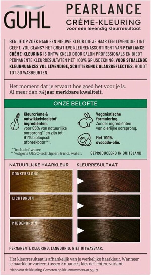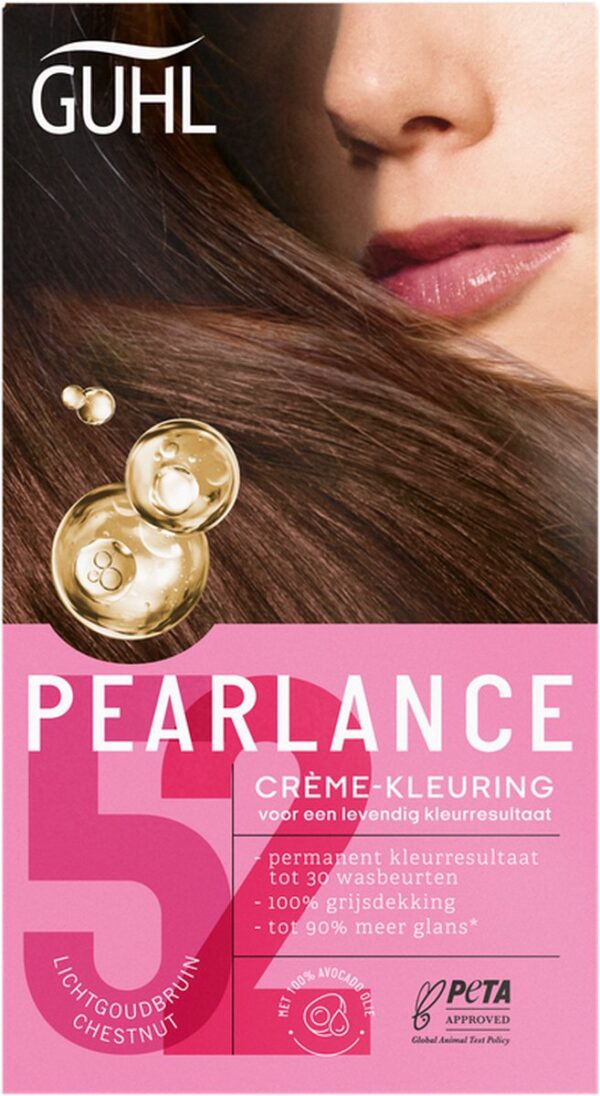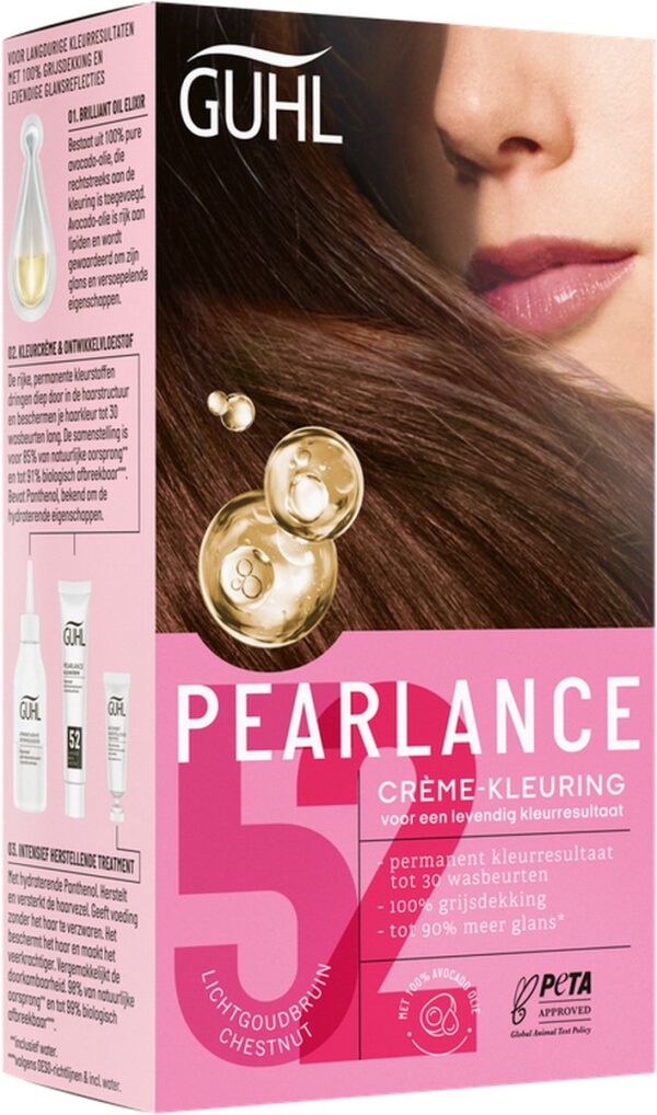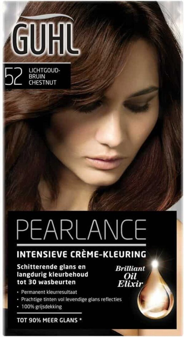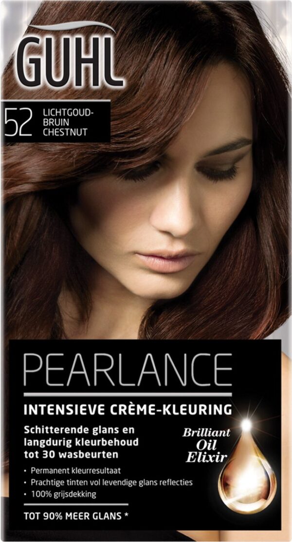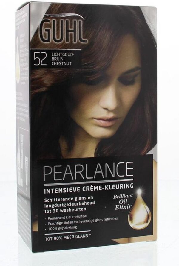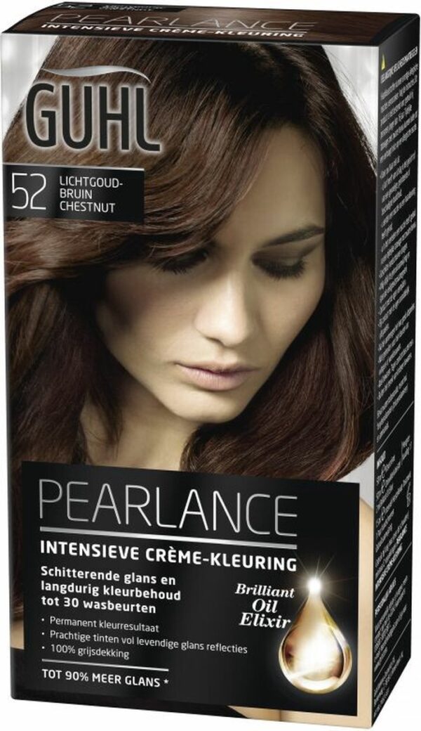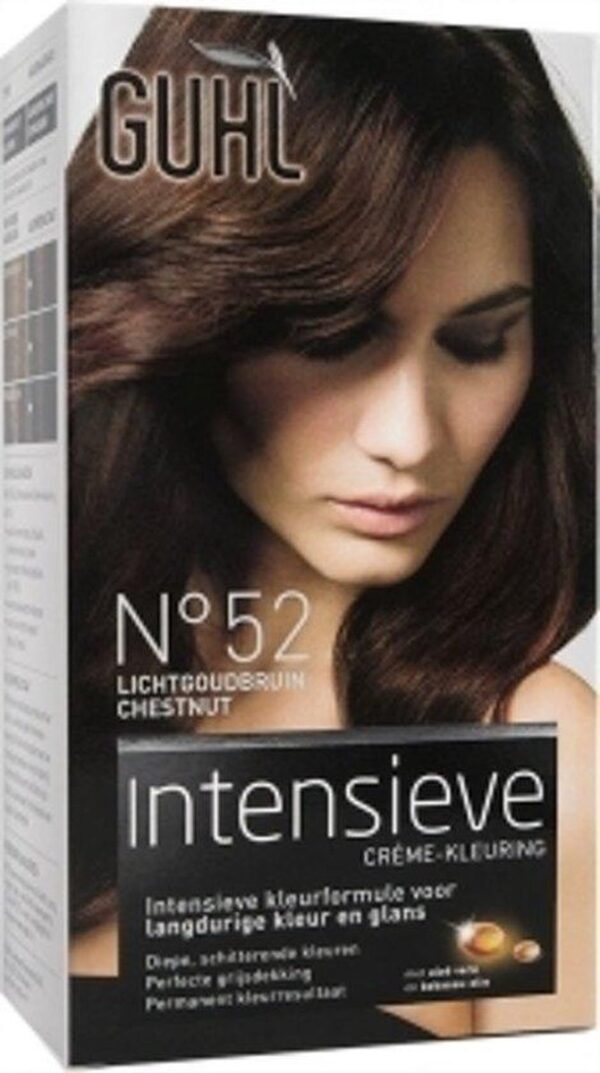 Guhl haarverf Crème-kleuring no. 52 Licht-goudbruin. De Intensieve Crème-kleuring geeft het haar een diepe, briljante kleur die haar intensiteit langdurig behoudt. Voor een fascinerend mooie haarkleur brand GUHL