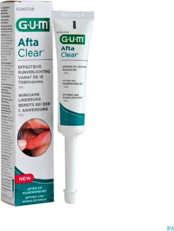 De GUM AftaClear Mondgel, zorgt voor een directe en langdurige pijnverlichting. Uitstekend geschikt voor lokale applicatie bij aften, brandblaartjes, irritaties van het gebit en andere mondwondjes.