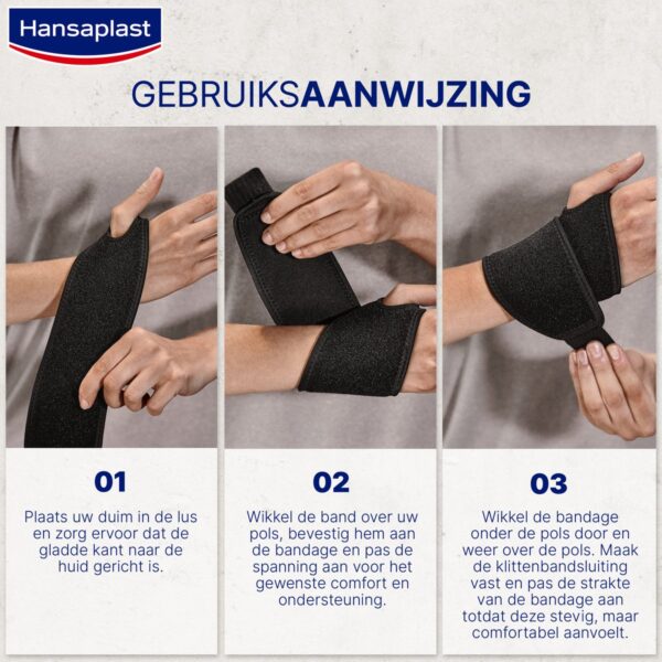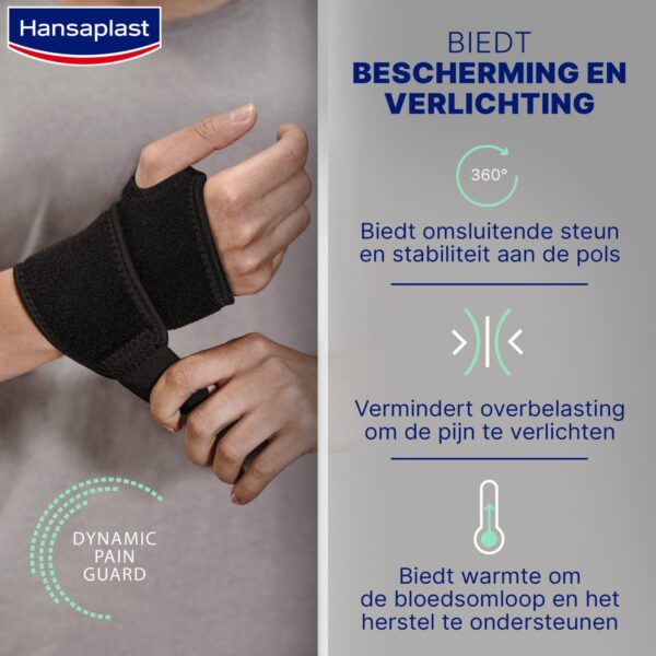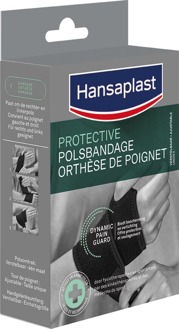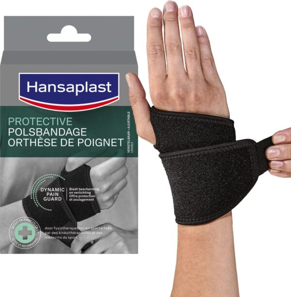 De Hansaplast Protective Polsbandage helpt zwakke of geblesseerde polsen te ondersteunen en te beschermen tegen verder letsel. De bandage geeft een gemiddeld niveau van ondersteuning tijdens activiteiten en de mate van compressie kan worden aangepast aan uw persoonlijke behoeften.