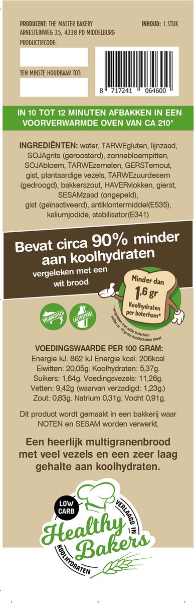 Healthy Bakers koolhydraat verlaagd brood onderscheidt zich door zijn speciale eiwitrijke samenstelling. Dankzij de speciale verpakking blijft het koolhydraat verlaagd brood langer vers en is het thuis eenvoudig af te bakken voor een altijd verse ervaring.