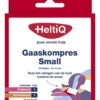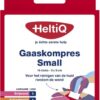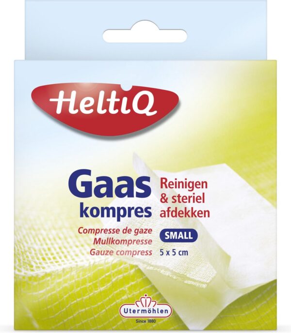 HeltiQ Gaaskompres is een steriel kompres voor het reinigen en afdekken van natte en droge wonden (natte wonden zijn wonden met veel wondvocht). Het kan samen met iedere (ontsmettende) vloeistof worden gebruikt. Het HeltiQ Gaaskompres heeft een fijne structuur en is gemaakt van 100% katoen. Hierdoor kan het een grote hoeveelheid wondvocht opnemen. Bovendien is het kompres comfortabel en zacht. Het rafelt niet en blijft goed in model. Het kompres is steriel en biedt een eerste bescherming tegen vuil, vocht en bacteriën. Het gaaskompres is hypoallergeen en irriteert niet.