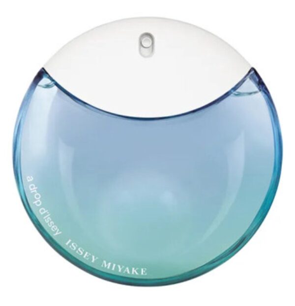 ONTWERP, SLECHTS ÉÉN DROP. De fles gemaakt voor A Drop D’Issey Eau de Parfum Fraîche behoudt een iconische ronde vorm. Het is verbeterd met een blauw naar groen verloop, dat doet denken aan de reis van een lenteregendruppel die uit de lucht valt in het hart van de weelderige groene natuur.