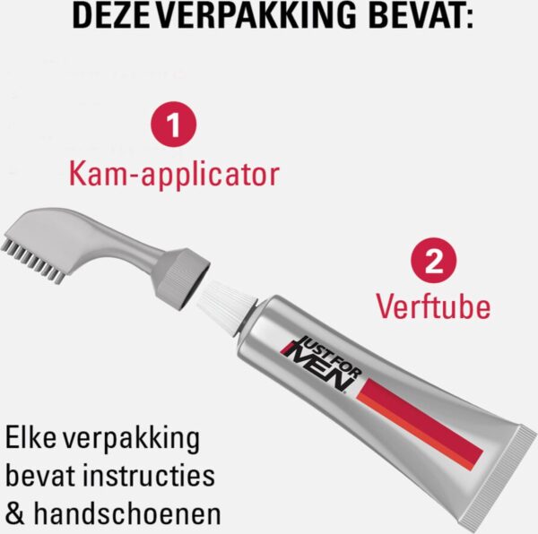 In de verpakking zit altijd een verftube, kam-applicator, plastic handschoenen en simpele stap-voor-stap instructies. Kies de juiste kleur passend bij je haarkleur. Jouw aanbevolen tint hangt af van je natuurlijke haarkleur en hoeveelheid grijs. Let op: kies bij twijfel een tint lichter. Mixen niet nodig. Inkammen, 10 minuten wachten en uitspoelen met shampoo.