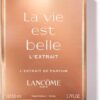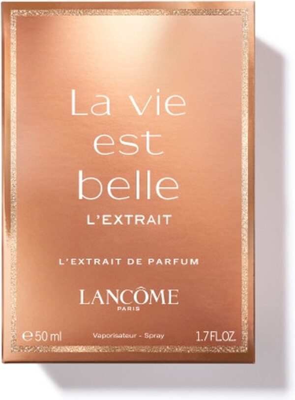 La Vie Est Belle L’Extrait is een verfijnde en sensuele herinterpretatie van het iconische Eau de Parfum. Het hart van het parfum bevat de geur van Damascena Roos en Iris Pallida, wat een krachtige en delicate combinatie is. Daarnaast is er ook de diepte van het Oudhout Akkoord te ruiken. * Topnoten: Peer, Bramen * Hartnoten: Iris, Oranjebloesem en Sambac Jasmijn * Basisnoot: Patchoeli