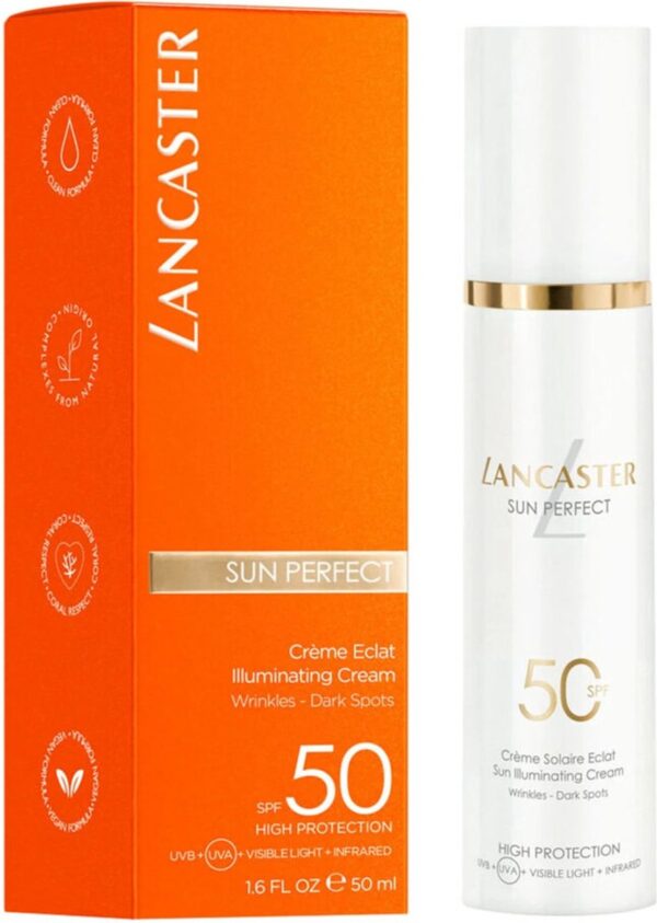 De geavanceerde Sun Perfect Sun Illuminating Cream is voorzien van de exclusieve en geavanceerde Full Light Technology van Lancaster, die zich richt op 100% van het zonnespectrum*. Ook bevat het de Anti-aging Technology, het Sun Repair System van natuurlijke oorsprong en het Glow Booster Complex.