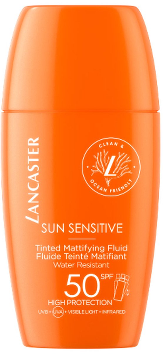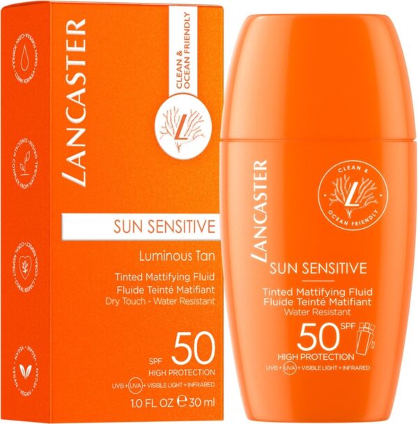 Lancaster Sun Sensitive Zonnecrème 30 ml is de best presterende bescherming van Lancaster voor gevoelige huid in een lichte, getinte formule. Sun Sensitive Tinted Mattifying Fluid SPF 50 combineert de geavanceerde bescherming van de Full Light Technology met het Sunsicalm en Tan Activator Complex om de huid te kalmeren en voor een zongebruinde teint te zorgen.-Lancaster Sun Sensitive Zonnecrème 30 ml