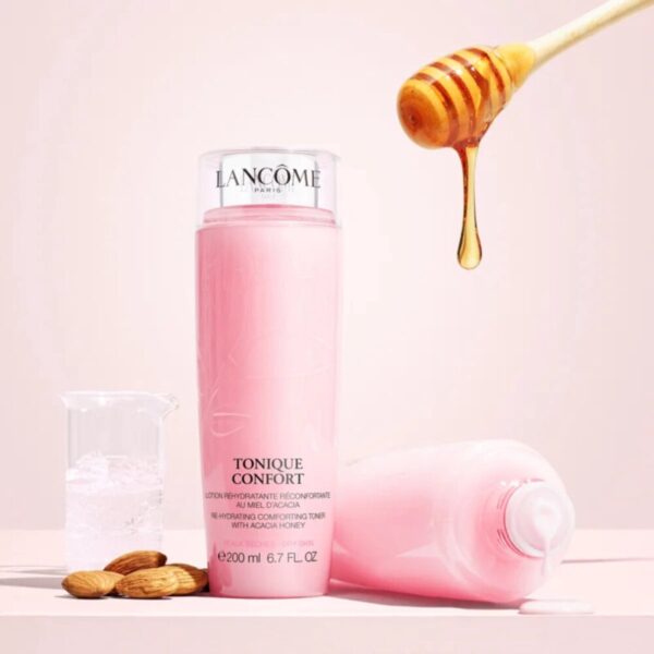Tonique Confort, de tonifiërende lotion van Lancôme, zuivert de huid op een natuurlijke manier.Het hydrateert en kalmeert de droge huid terwijl het voorzichtig alle sporen van make-up en onzuiverheden verwijdert.De unieke huidverzorgende formule is verrijkt met amandelextract en acacia- honig waardoor uw huid schoon, zacht en comfortabel aanvoelt na gebruik.