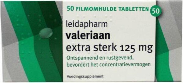 De 125 mg Valeriaan van Leidapharm werkt ontspannend en rustgevend in extra stressvolle situaties, bij extra spanning en geestelijke inspanning en ter bevordering van het concentratievermogen. .Valeriaanextract is een natuurlijk middel dat een ontspannende en rustgevende invloed heeft op lichaam en geest en heeft hierdoor ook een gunstige invloed op het concentratievermogen.Valeriaan Extra Sterk 125 mg kan daaromeen positieve invloed hebben bij stress-situaties; bijvoorbeeld bij werk- of priv-omstandigheden of (rij)examens.