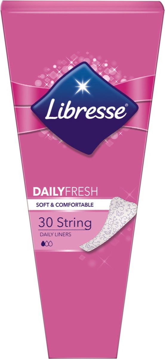 Libresse String inlegkruisjes passen perfect in stringondergoed. Het materiaal is superdun en exta zacht en laat je huid op een natuurlijke manier ademen en is daardoor geschikt voor dagelijks gebruik. Daarnaast zijn ze ongeparfumeerd.