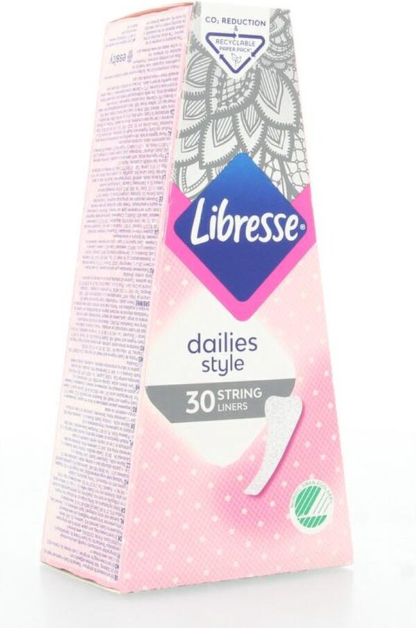 Libresse StringLibresse String inlegkruisjes zijn speciaal ontworpen voor stringondergoed. Daarnaast zijn ze ademend en ongeparfumeerd.