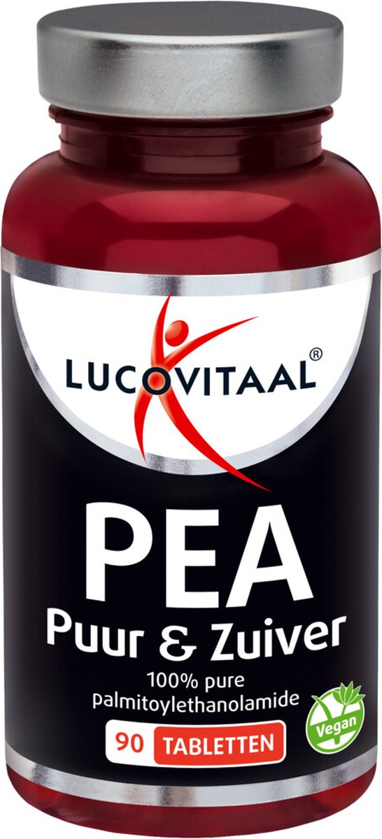 Lucovitaal Pea Puur & Zuiver is een voedingssupplement. PEA is een afkorting van Palmitoylethanolamide. Dit is een lichaamseigen vetzuuramide die in vele levende wezens voorkomt. Het is een stof die in lichaamscellen geproduceerd wordt en fysiologisch werkzaam is. In de cel zijn enzymen aanwezig die palmitoylethanolamide aanmaken en ook enzymen die deze stof weer afbreken tot bouwstenen voor ons lichaam. Eieren, pinda’s, soja, (orgaan)vlees en vis bevatten kleine hoeveelheden PEA.