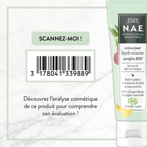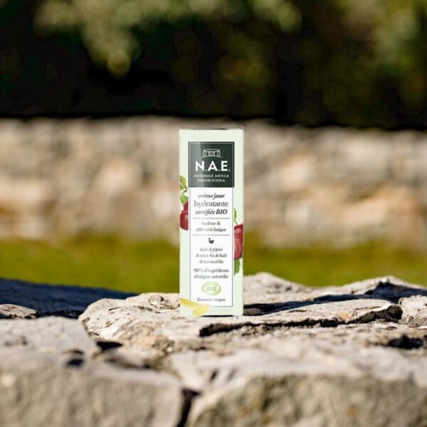 N.A.E. verzorgende dagcreme bestaat voor 98% uit natuurlijke ingrediënten en voor 24% uit biologische ingrediënten. De formule is vegan. Dag na dag lijkt de huid vol energie, tekenen van vermoeidheid verdwijnen. Deze verzorging met een zachte en lichte textuur is geschikt voor alle huidtypes.Voor een ideale opname, masseer de crème zacht in met cirkelvormige bewegingen, van het midden van het gezicht naar buiten. De zachte en lichte textuur smelt op de huid.