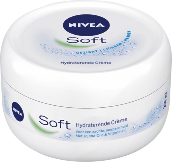 NIVEA Soft Pot 200ml is een zeer effectieve, intensief hydraterende crème voor dagelijks gebruik. De lichte formule met Vitamine E en 100% natuurlijke Jojoba-olie zorgt voor 48 uur hydratatie voor een zachte huid, trekt snel in en is niet vet. 100% CO2 compensatie* voor dit product. Huidvriendelijkheid dermatologisch goedgekeurd. *Compensatie van overige CO2 uitstoot via financiering van projecten ten gunste van het klimaat.