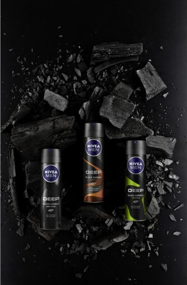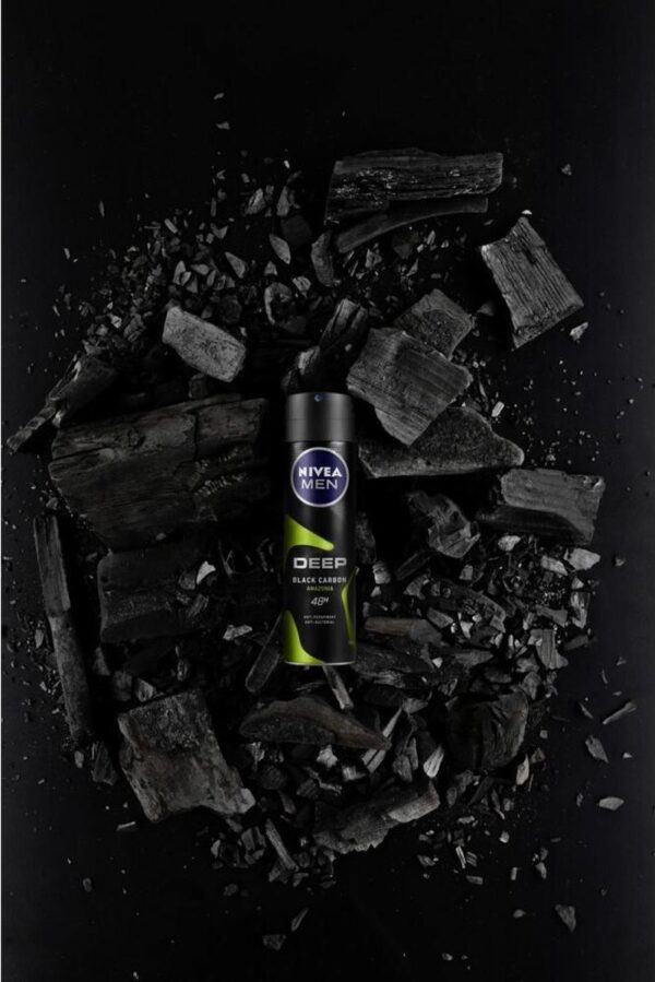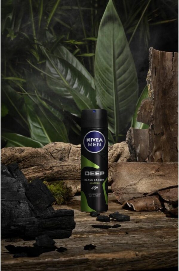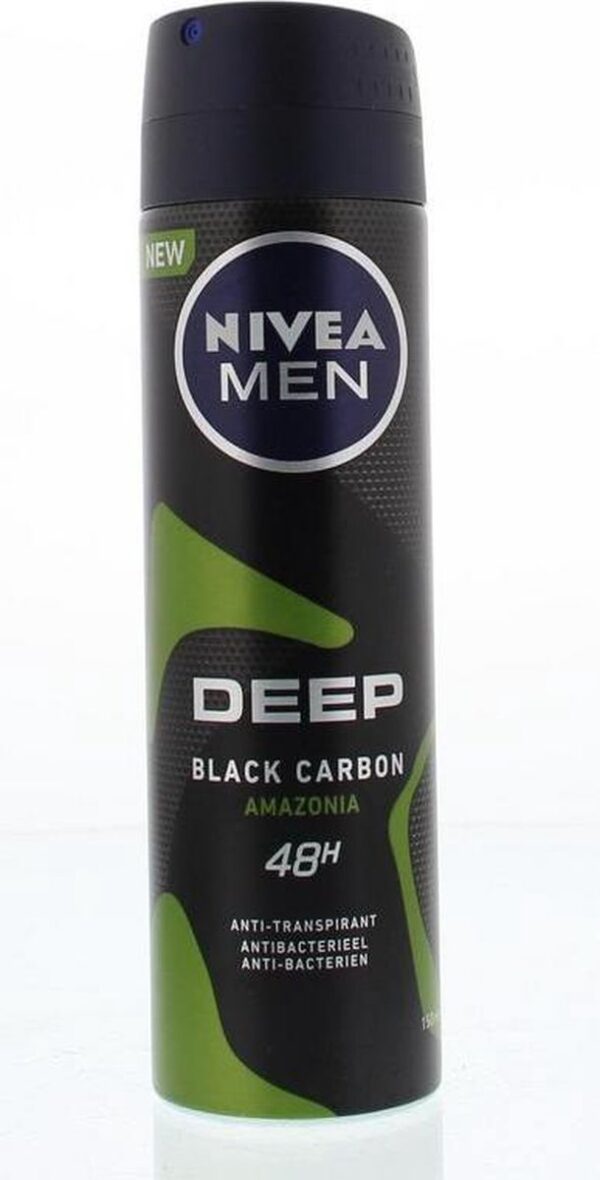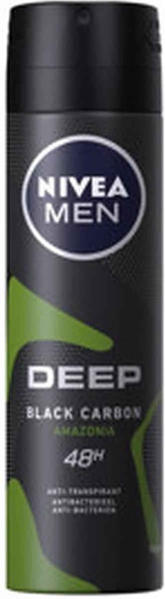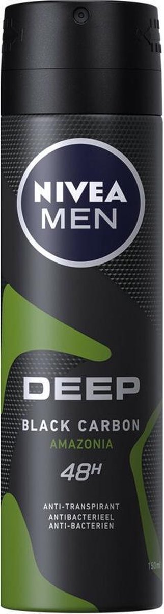 NIVEA MEN DEEP met Black Carbon en de verfrissende geur van AMAZONIA48u betrouwbare anti-transpirant bescherming. Huidverdraagzaamheid dermatologisch bewezen.
