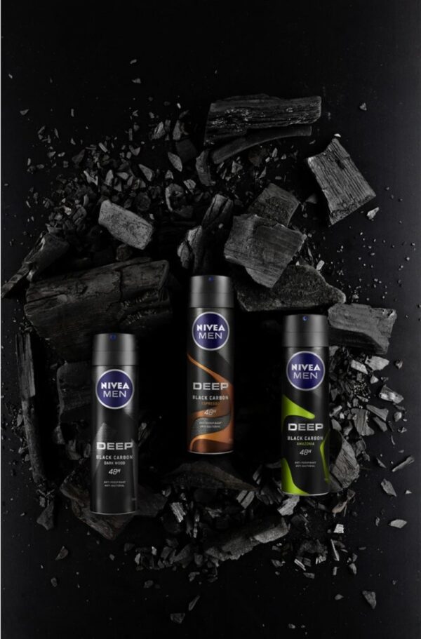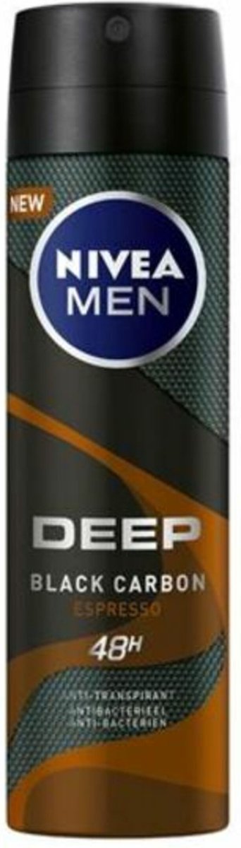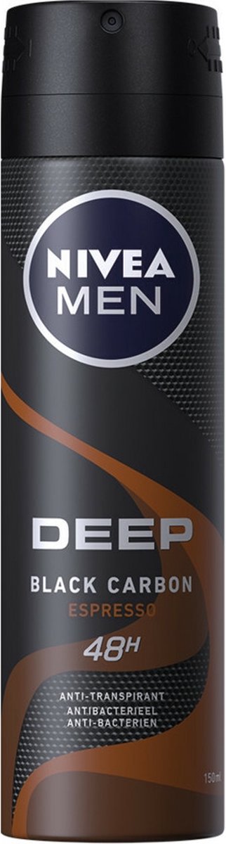 NIVEA MEN DEEP met zwarte koolstof en de sensuele geur van ESPRESSO48u betrouwbare anti-transpirant bescherming. Huidverdraagzaamheid dermatologisch bewezen.