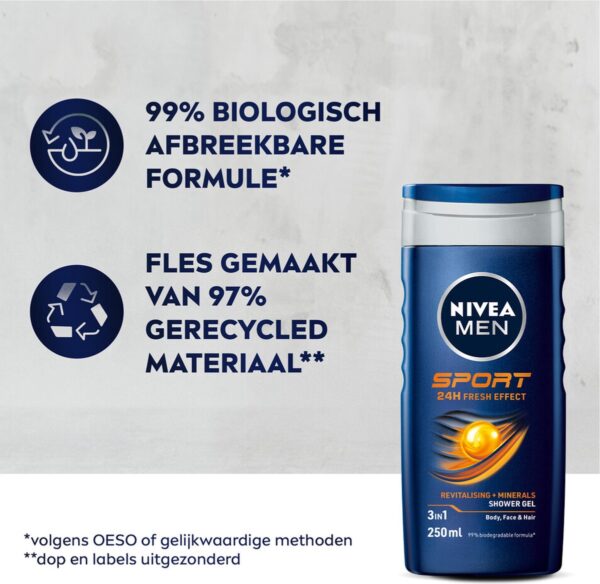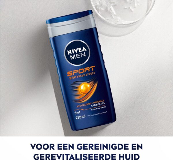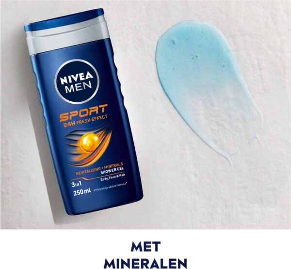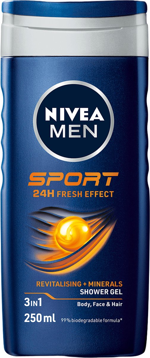 Nivea Men Sport Douchegel: Voor mannen die een verkoelende douche willen na het sporten met de beste verzorging voor de huid. De verzorgende formule met mannelijke limoen geur biedt de huid langdurige frisheid. Zorgt voor een hernieuwd en verzorgd gevoel van huid en haar.