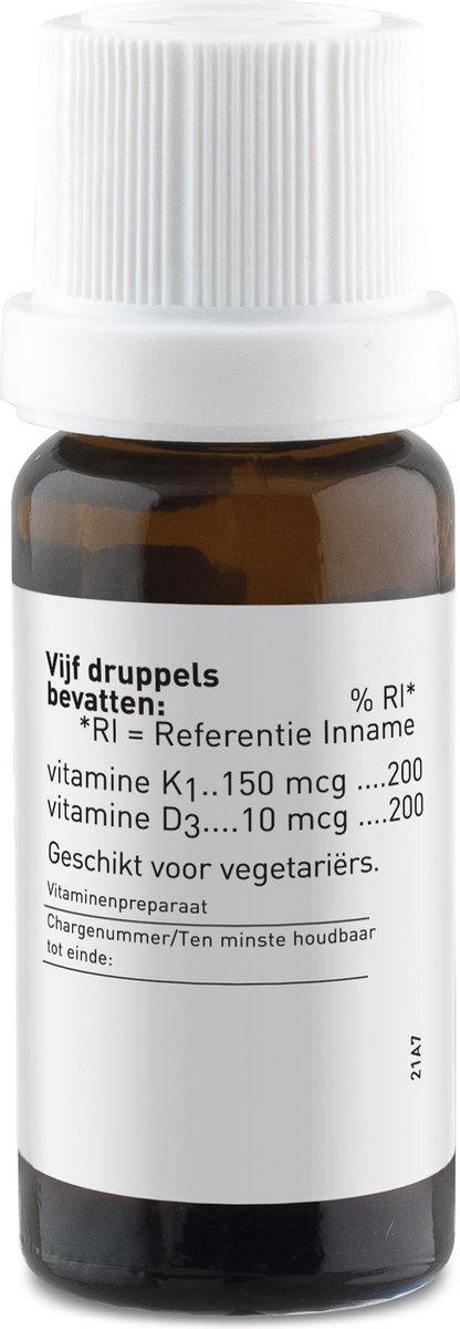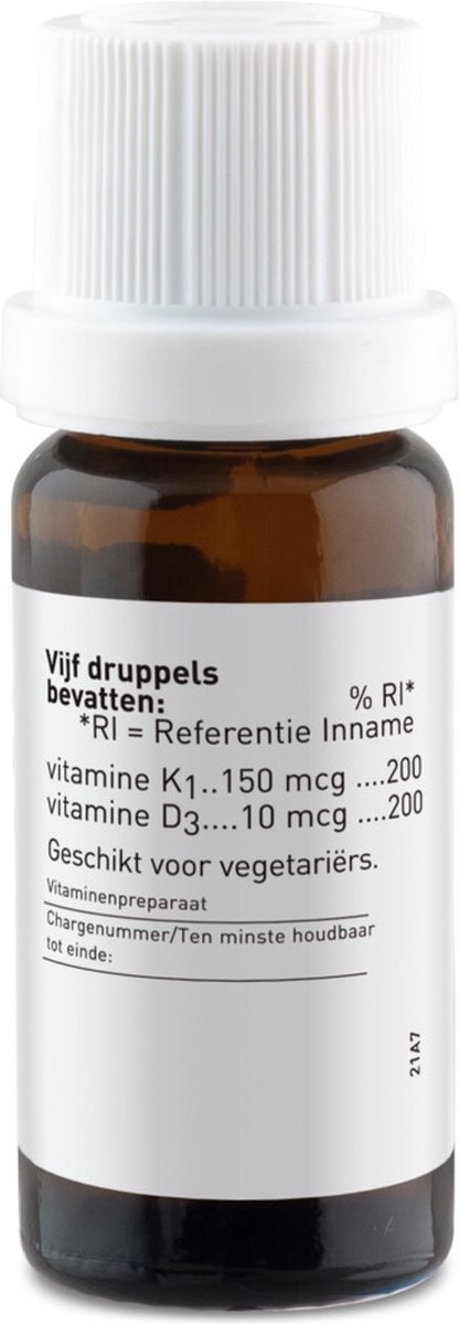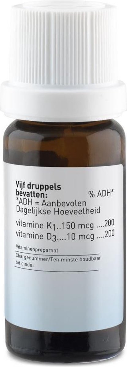 Vitamine K1 & D3 druppels speciaal voor zuigelingen die borstvoeding krijgen. Bevat per dagdosis precies de door de Gezondheidsraad voor jouw kindje aanbevolen hoeveelheden vitamine D en K. Het advies is om baby’s die volledige borstvoeding krijgen vanaf dag 8 tot 3 maanden 150 microgram extra vitamine K te geven. Daarnaast is het advies om baby’s en peuters tot 4 jaar 10 microgram extra vitamine D te geven.